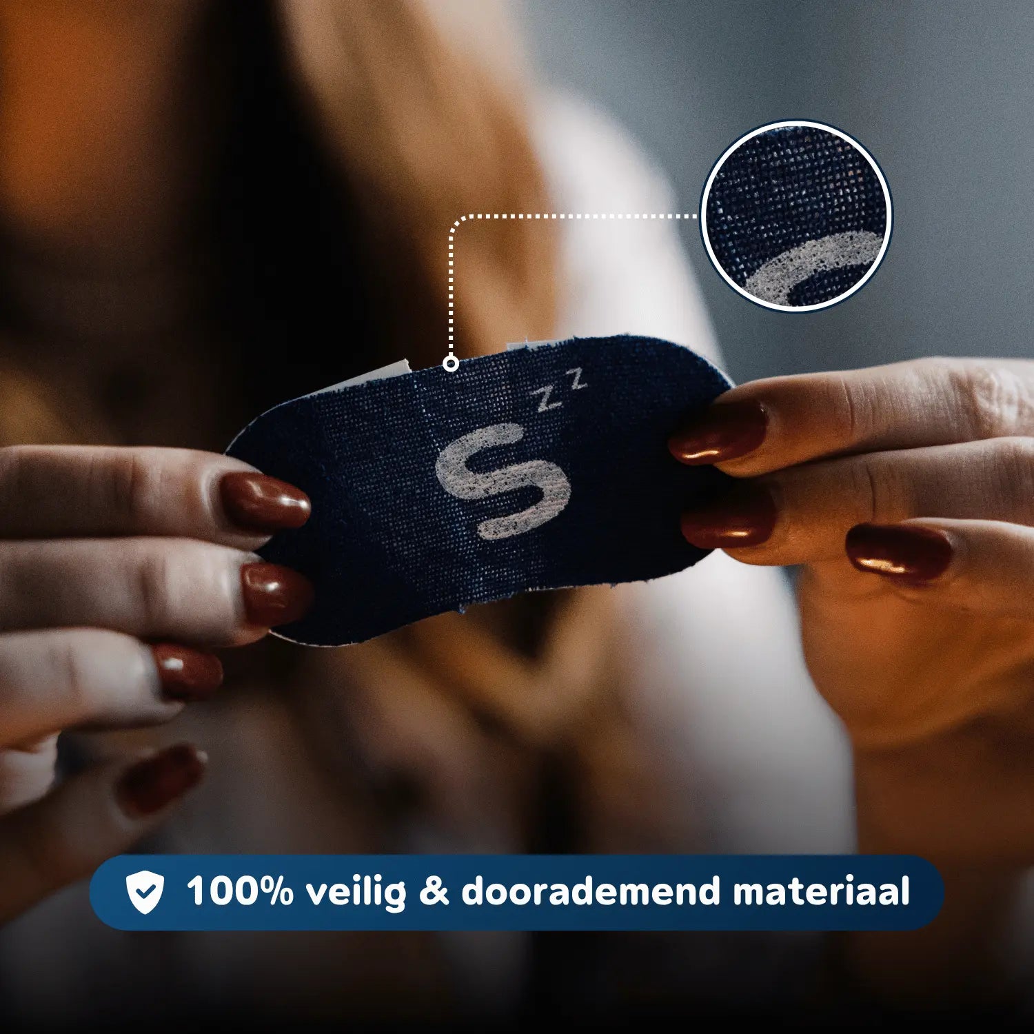 The Snoozeless Mouth Tape and Nasal Strips are designed to promote healthy nasal breathing and reduce snoring. Use the Mouth Tape only as an adult and avoid it if you have a cold, respiratory issues such as heart problems, or in combination with alcohol or sedatives. The Nasal Strips can be used during a cold for extra relief. Discontinue use if skin irritation occurs and consult a doctor if necessary. Please read the instructions carefully. Use is entirely at your own risk.
