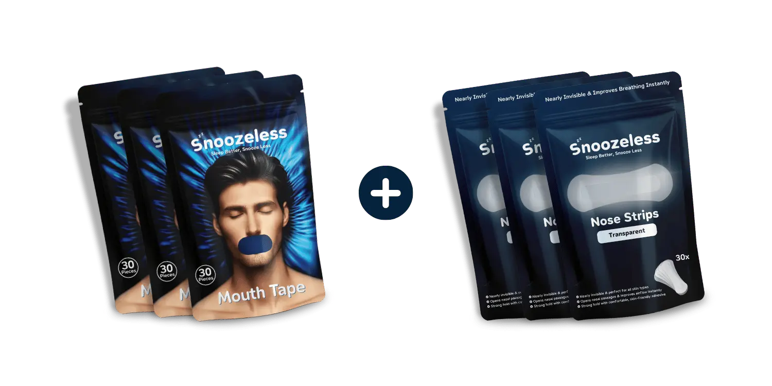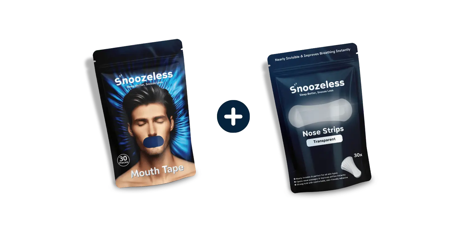 Snoozeless Neusstrips en Mondtape vormen samen de perfecte combinatie voor een betere slaap. De neusstrips openen zachtjes je neusvleugels, waardoor de luchtstroom wordt verbeterd. Tegelijkertijd zorgt de mondtape ervoor dat je mond gesloten blijft, wat neusademhaling stimuleert. Dit duo helpt niet alleen om snurken te verminderen, maar bevordert ook een diepere, meer herstellende slaap.